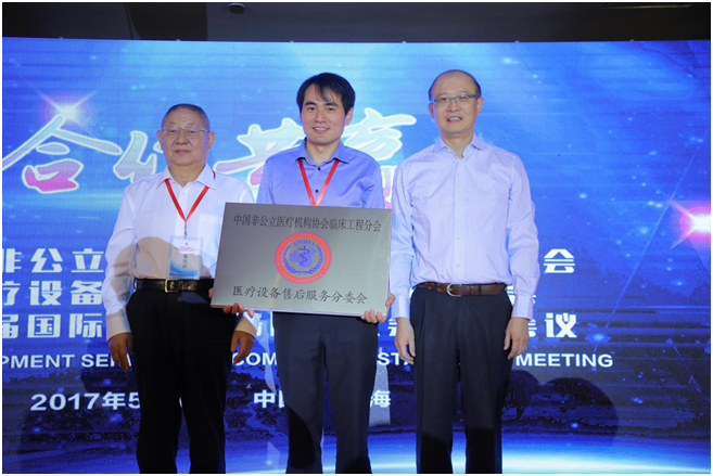5月14日上午,中國非公立醫療機構協會臨床工程分會醫療設備售后服務分委會成立大會在上海中航泊悅酒店舉行,上海昆亞醫療器械股份有限公司總裁許仁祥先生當選為首屆醫療設備售后服務分委會主任。大會現場,中國非公立醫療機構協會臨床工程分會金東會長和孫貴瑞常務副會長向許仁祥主任授牌以及頒發證書。